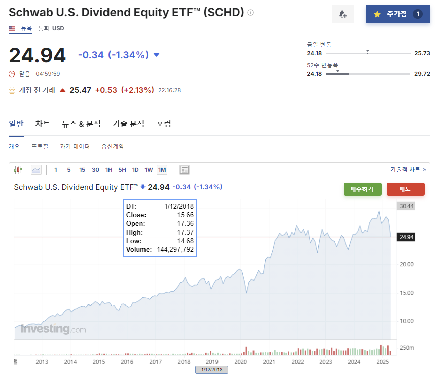 • 배당이 지속 증가하길 원한다면 → SCHD