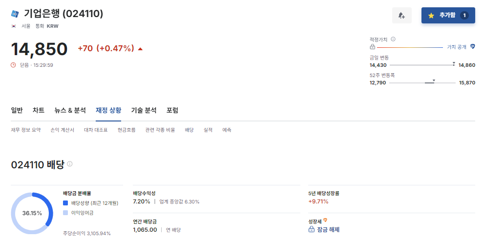 ▶ 특징: 국책은행 성격. 민간 은행 대비 배당 탄력성 낮음
