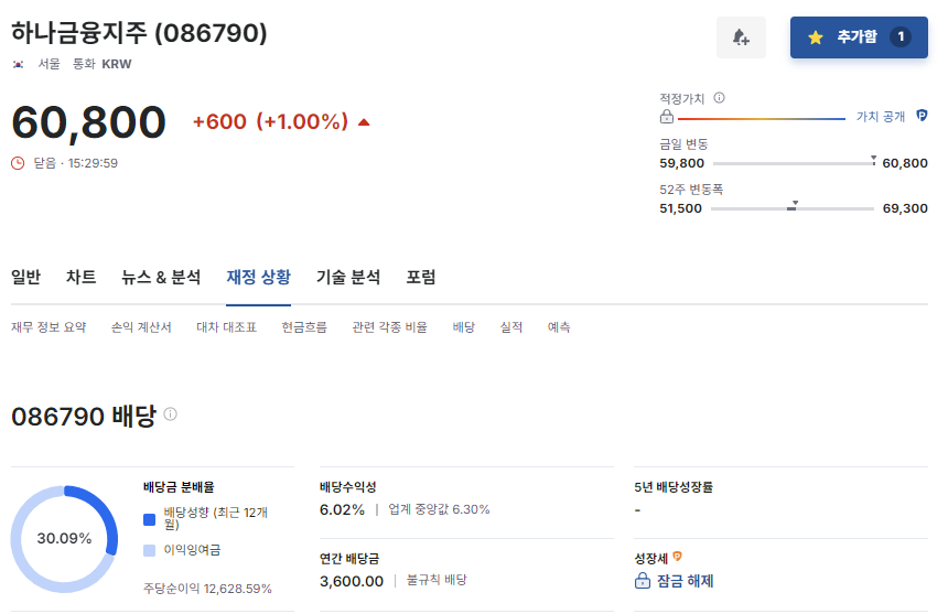 📌 3. 하나금융지주 (086790)