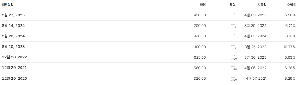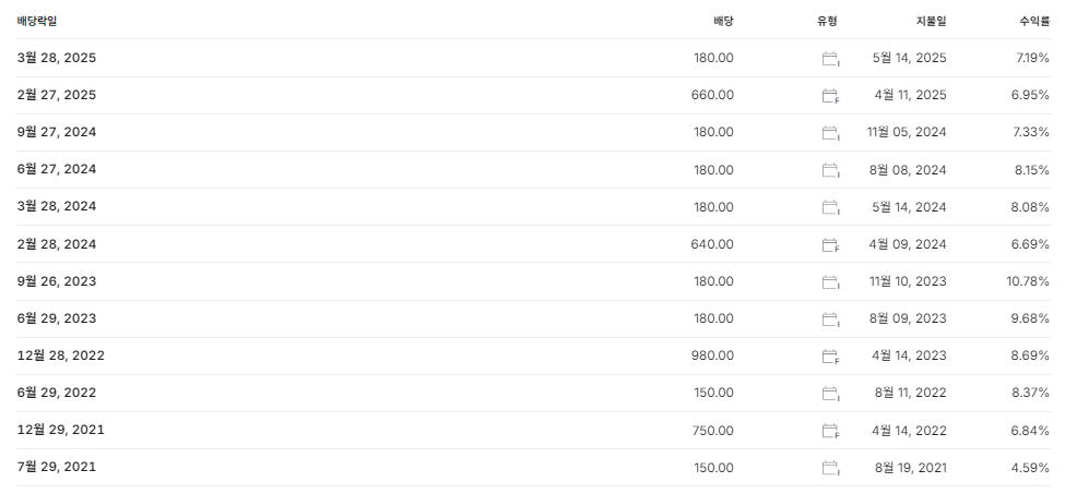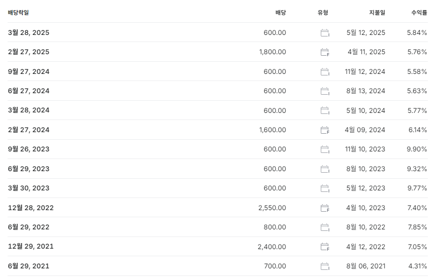 2023년부터 중간배당 + 분기배당을 확대하며 연간 분배형 구조로 전환. 배당투자자들에게 인기.